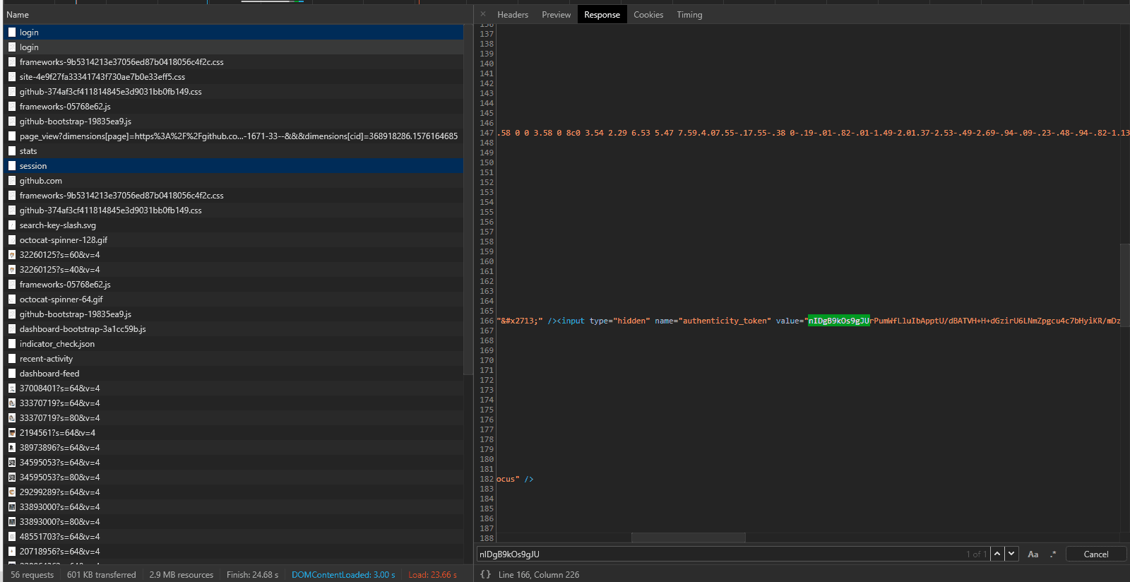 很容易找到这个 token 的来源: 上一个请求, 即拿到登录表单的请求.