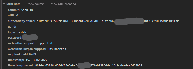 实际上请求的项中, 只有5个是有实际作用的: commit, utf8, login, password, authenticity_token