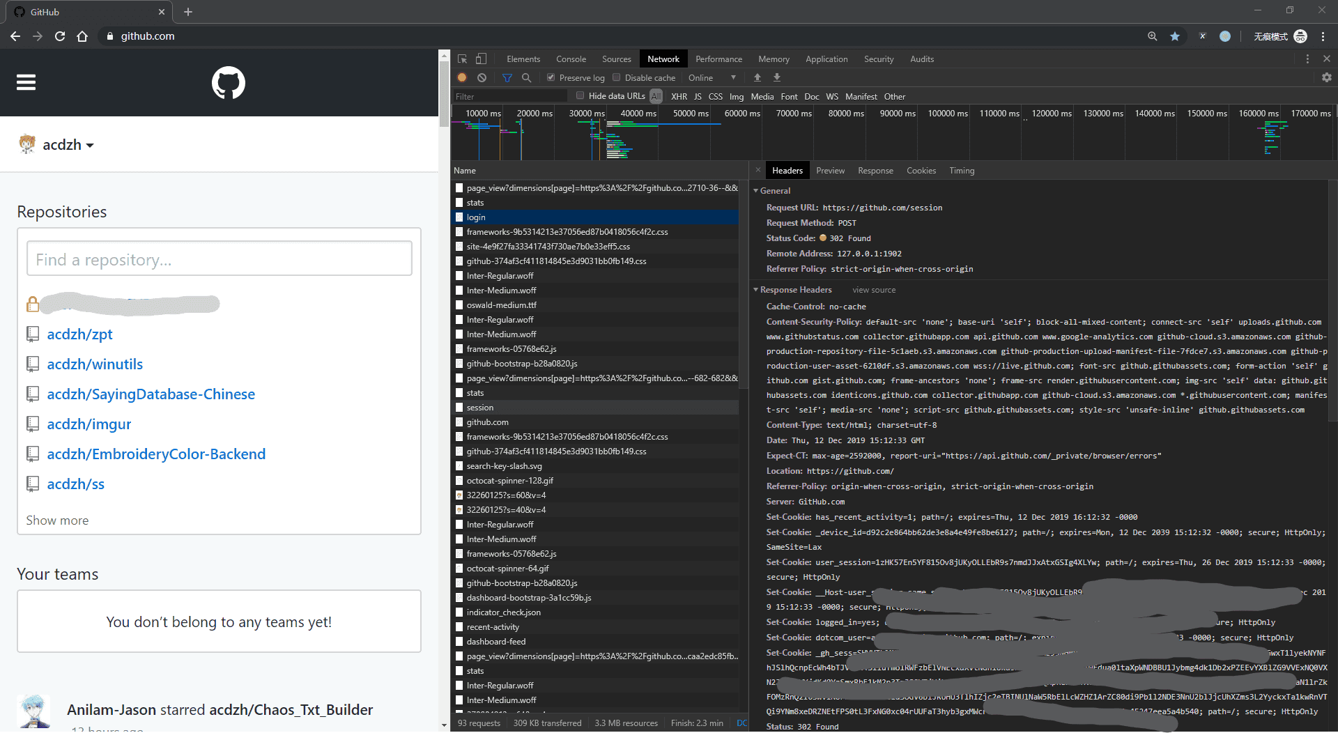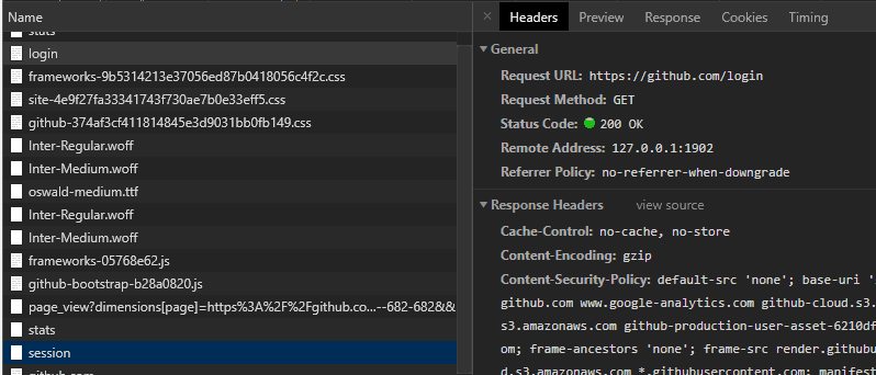 转到网址https://github.com/login, 登录, 浏览器抓一下请求.